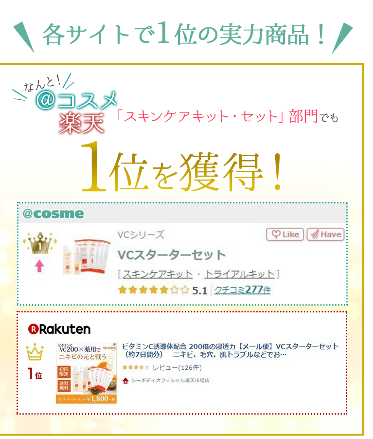 (https://is.gd/DtkFCS) - 調査内容:ビタミンCスキンケアセット 品質満足度 第1位