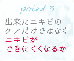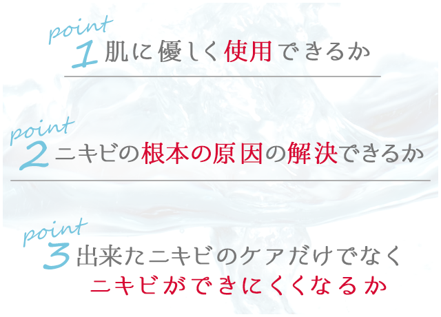 これからお伝えする3つのポイントを押さえておけば、自分に合ったニキビケア商品を選ぶことができます。